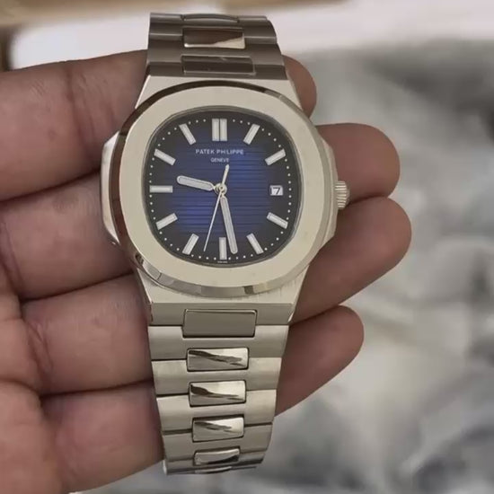 🔷 12-Hour Octagonal Blue Dial: Inspired by the original Nautilus with baton-style luminous hands