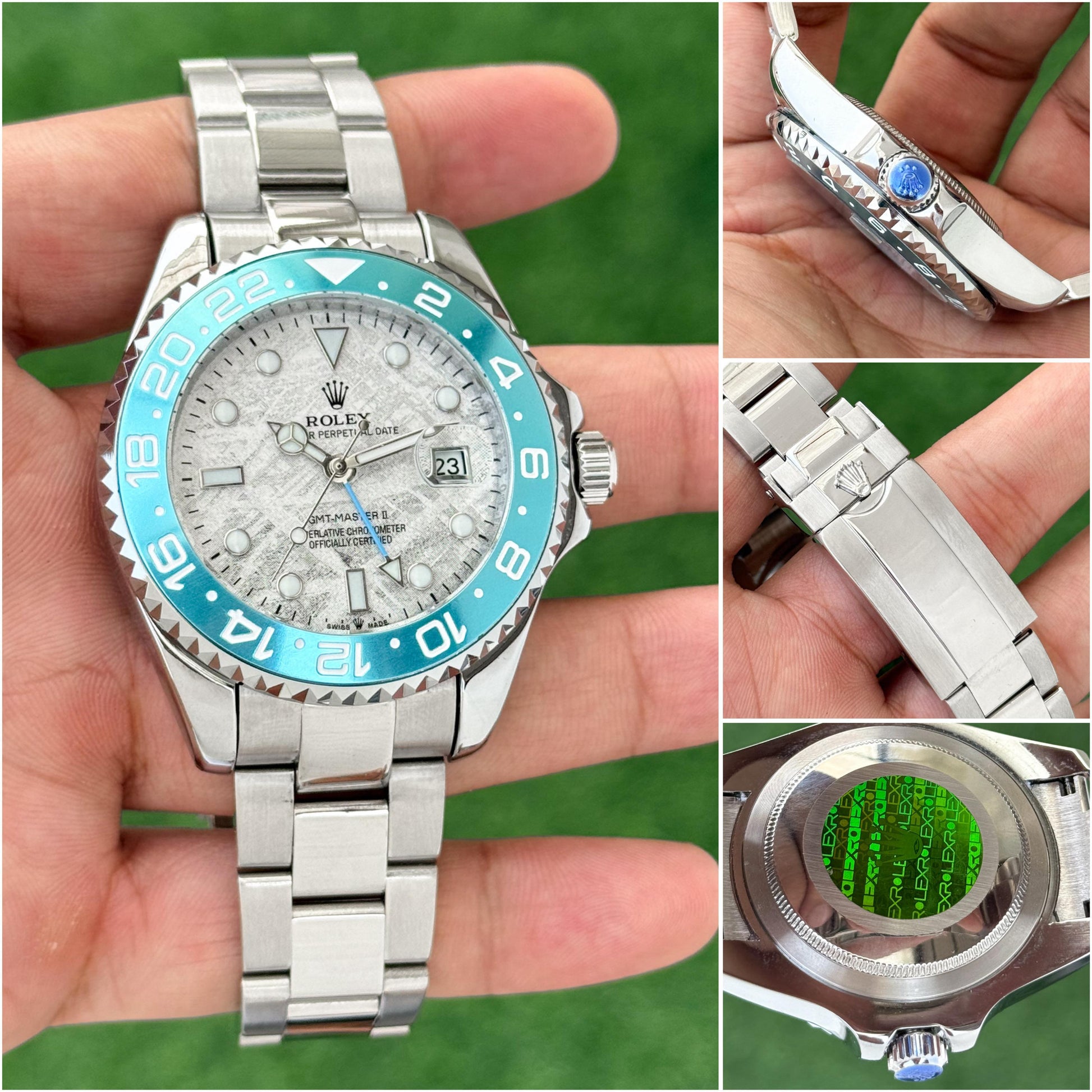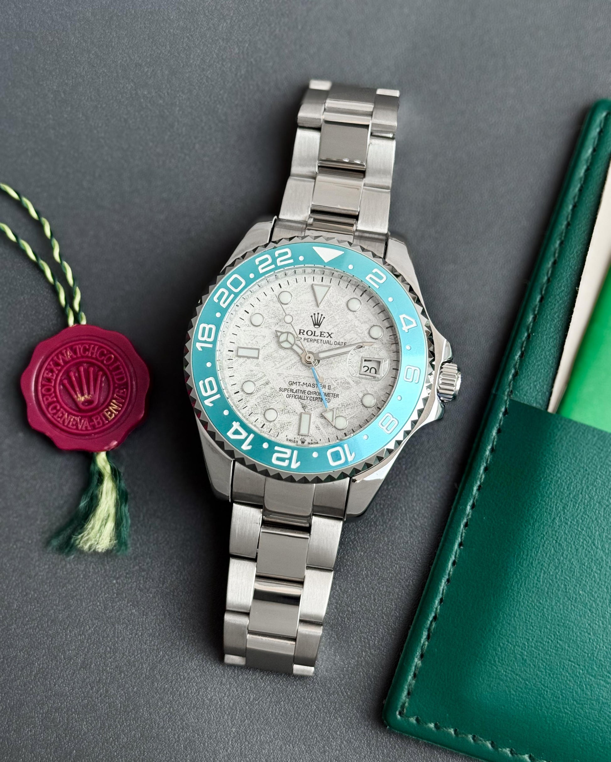 The Rolex GMT II (7AAA Premium Collection) stands as an emblem of precision, sophistication, and enduring craftsmanship. Designed for men who value timeless luxury, it mirrors the legendary design of the Rolex GMT-Master II, a model celebrated for its global traveler functionality and classic aesthetics.