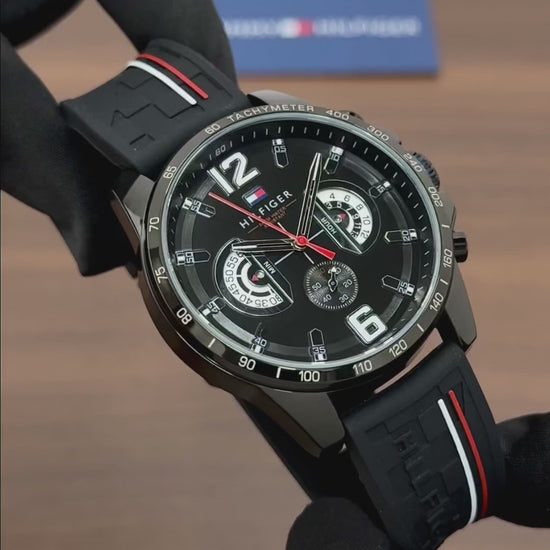 The Tommy Hilfiger Decker Chronograph from the 7AA Premium Collection is a daring, complex timepiece that makes an unforgettable impression inside and out. This 43mm men's watch features a modern chronograph design perfect for those seeking bold functionality with premium craftsmanship—now restocked due to huge demand with weekend special pricing.